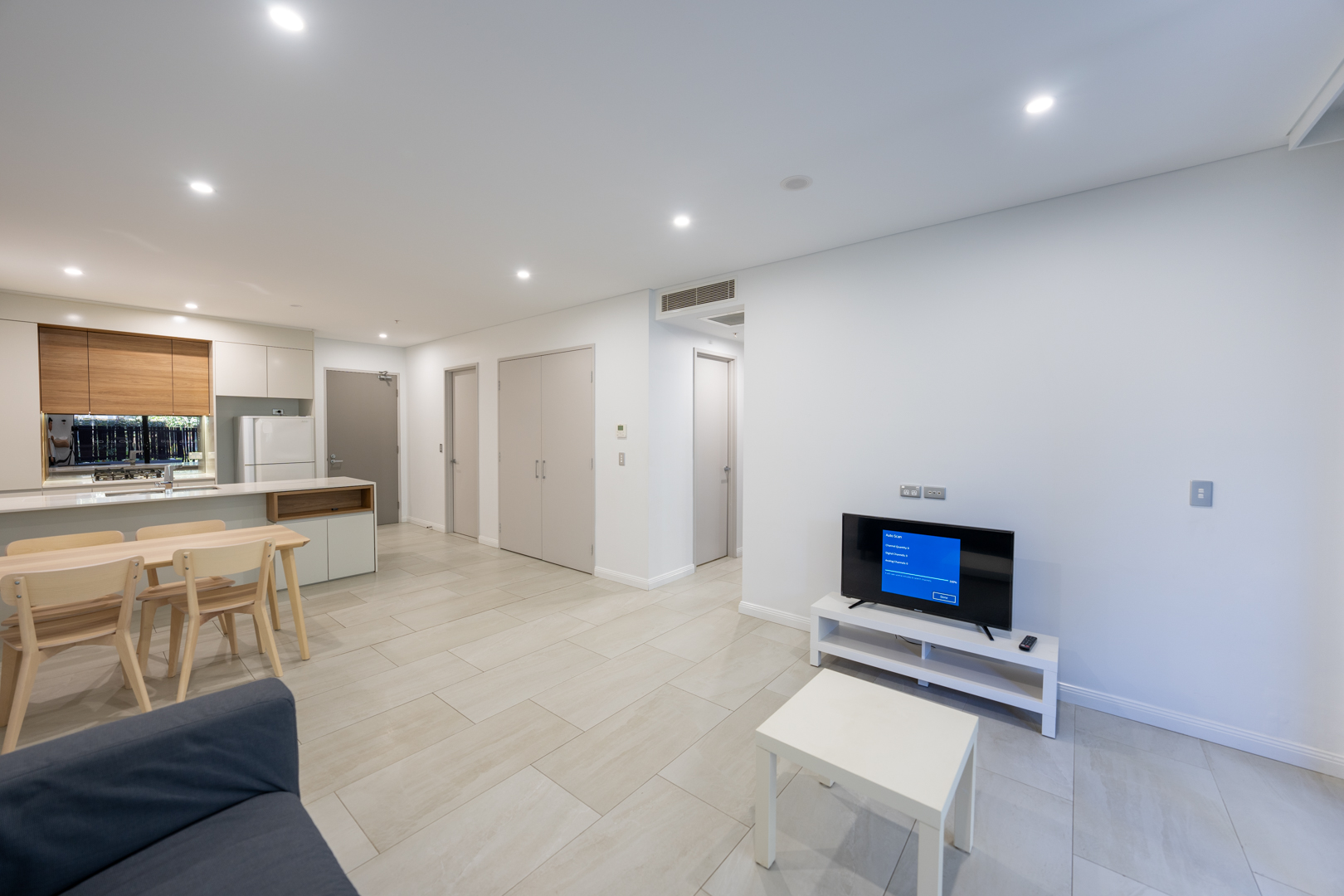 living room :TV, Sofa, coffee table and vacuum cleaner;