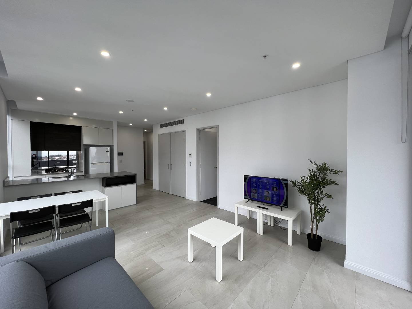 living room :TV, Sofa, coffee table and vacuum cleaner;