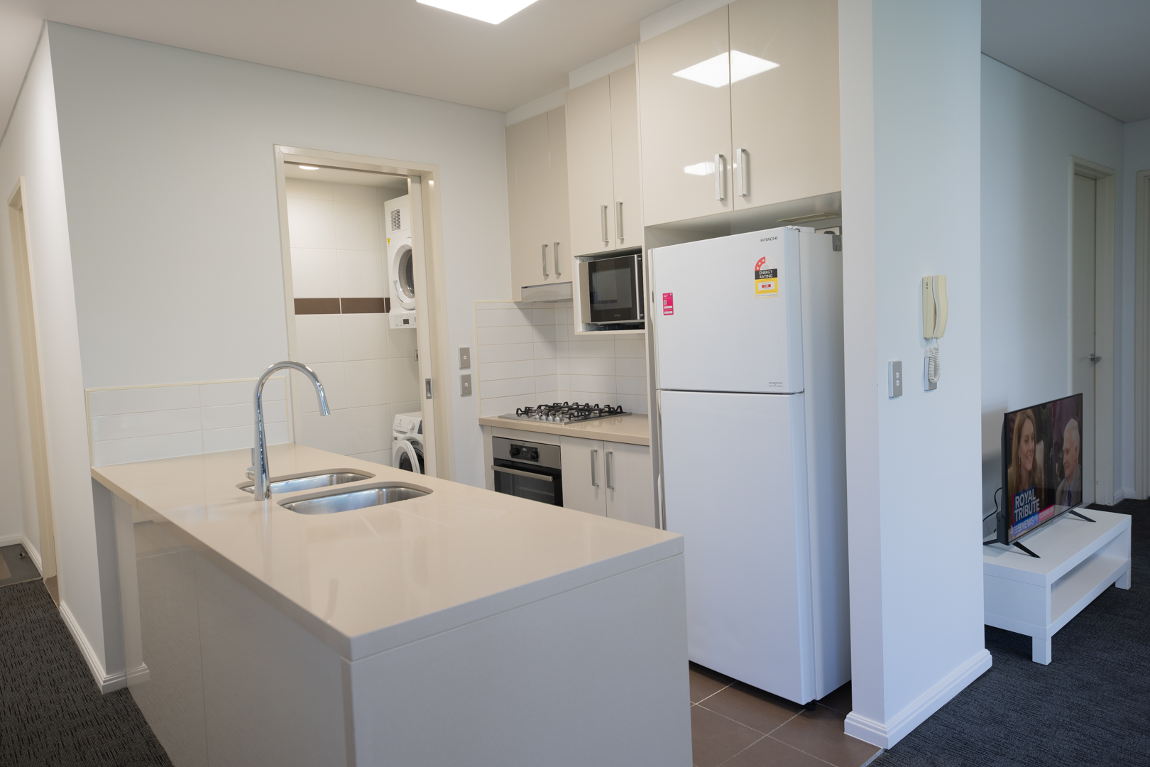 * Furnished with Fridge, Microwave in Kitchen; Wash machine and Dryer in Laundry; TV, Sofa, coffee table in living room; Dining table and chairs in dining area;