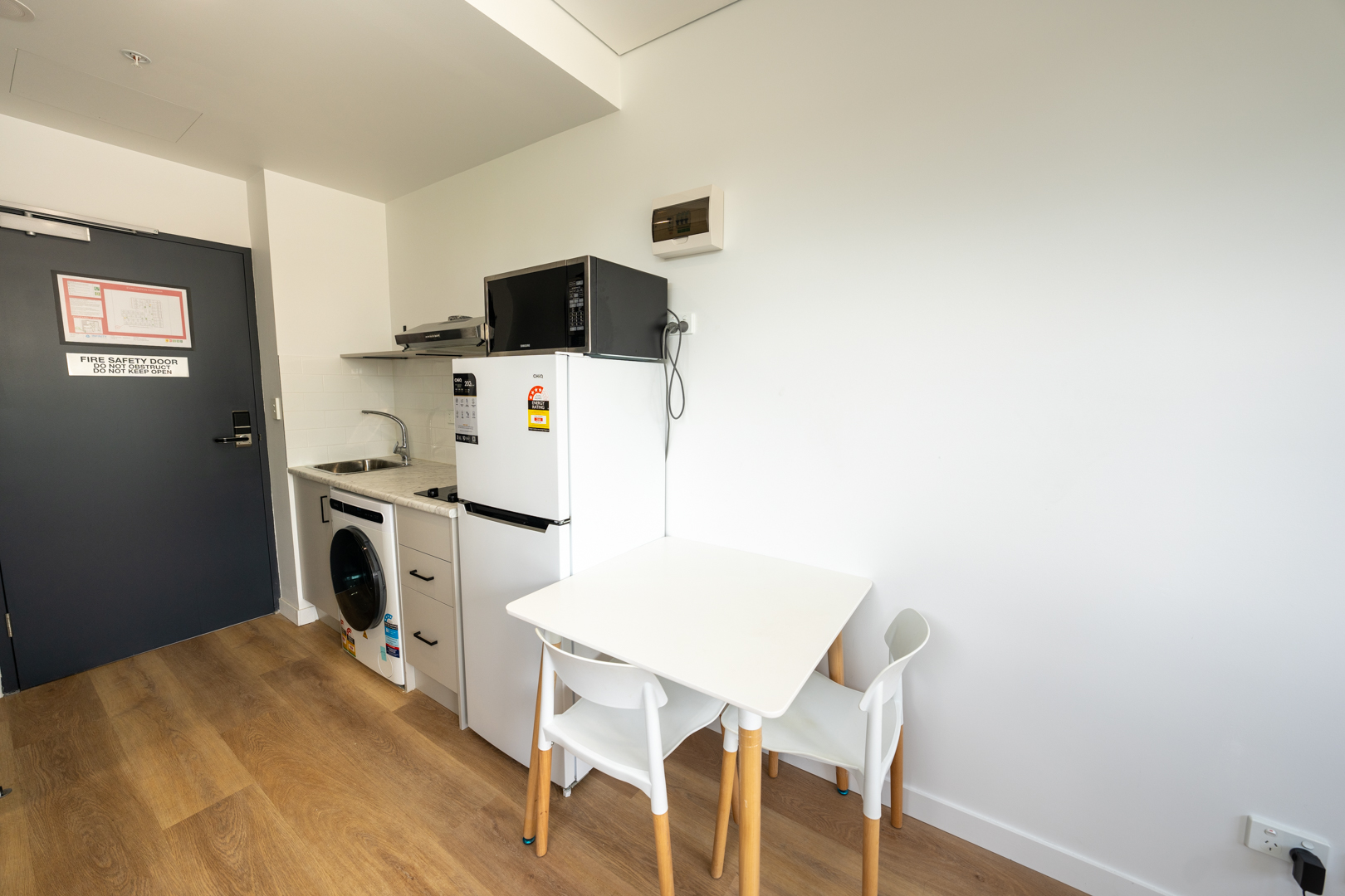* Furnished with Fridge, Microwave in Kitchen area; Wash machine in Laundry area; Sofa, Dining table and chairs in dining area;